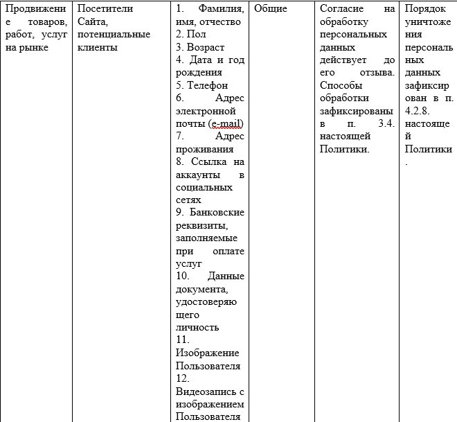 следующими способами: сбор, запись, систематизация, накопление, хранение, уточнение(обновление, изменение), извлечение, использование, передача (предоставление, доступ), обезличивание, блокирование, удаление и уничтожение, а также на вышеуказанную обработку иных своих персональных данных, полученных в результате их обработки, включая обработку третьими лицами, в том числе в информационных системах персональных данных с использованием средств автоматизации или без использования таких средств. Обработка персональных данных Пользователей осуществляется в соответствии с Федеральным законом от 27.07.2006 No 152-ФЗ «О персональных данных».
